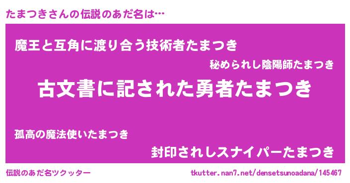 | ヒーロー風カッコイイあだ名 | 『ネオタマツキ』『愛の使者たまつき』 |