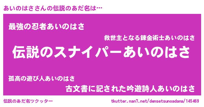 | 胡散臭い通販商品みたいなあだ名 | 『必ず成功する霊験あらたかなお札…その名も「あいのはさ」』 |