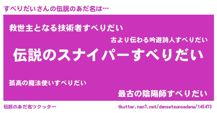 | 男性向けラノベタイトル風あだ名 | 『すべりだいの憂鬱』『緋弾のスベリダイ』 |