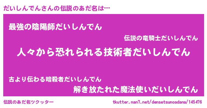 | 意味不明あだ名 | 『眠気覚ましガムだいしんでん味』 |