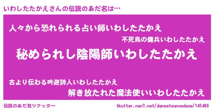 | 男性向けラノベタイトル風あだ名 | 『やはりいわしたたかえの青春ラブコメはまちがっている 』 |