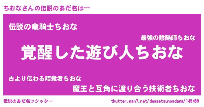 | 男性向けラノベタイトル風あだ名 | 『ちおなの嫁は女の子じゃないと思った?』 |