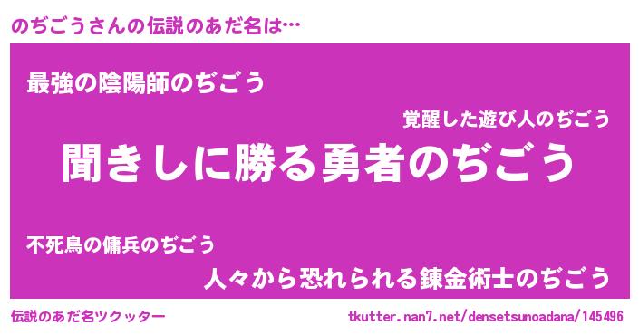 | 男性向けラノベタイトル風あだ名 | 『のぢごうという概念が存在しない退屈な世界 』 |