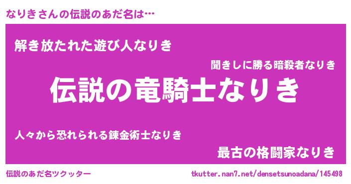 | ヒーロー風カッコイイあだ名 | 『仮面ナリダー』『サイバー戦士ナリキ』 |