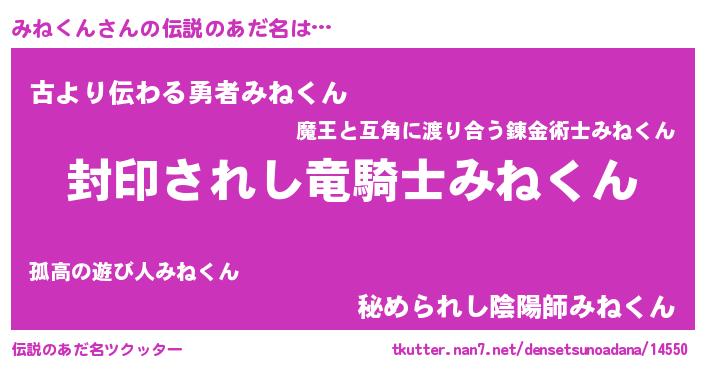 | ヒーロー風カッコイイあだ名 | 『仮面ミネダー』『超時空戦士ミネクン』 |