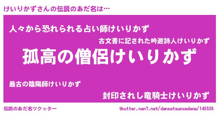 | 意味不明あだ名 | 『とにかく怪しいけいりかず』 |