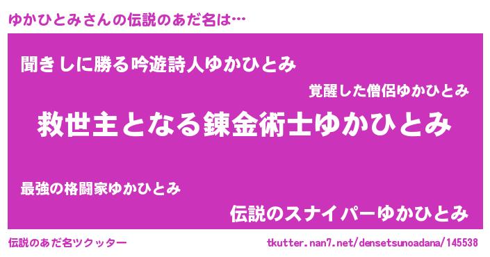 | 意味不明あだ名 | 『自称ゆかひとみ』『永久保存ゆかひとみ』 |