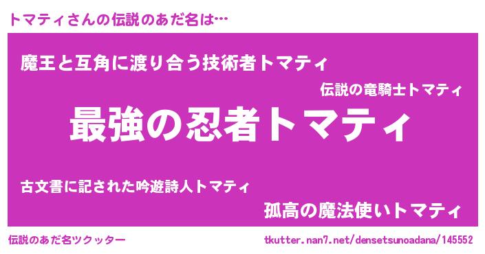 | ヒーロー風カッコイイあだ名 | 『仮面トマダー』『ウルトラトマティマン』 |