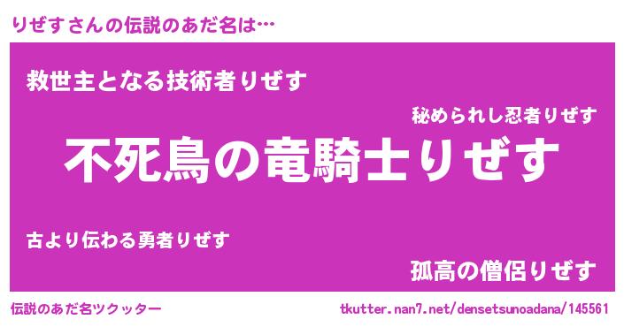 | ヘコむあだ名 | 『りぜにー』『りぜお』『酢こんぶ』 |