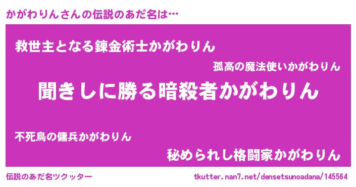 | 意味不明あだ名 | 『永久保存かがわりん』『自称かがわりん』 |