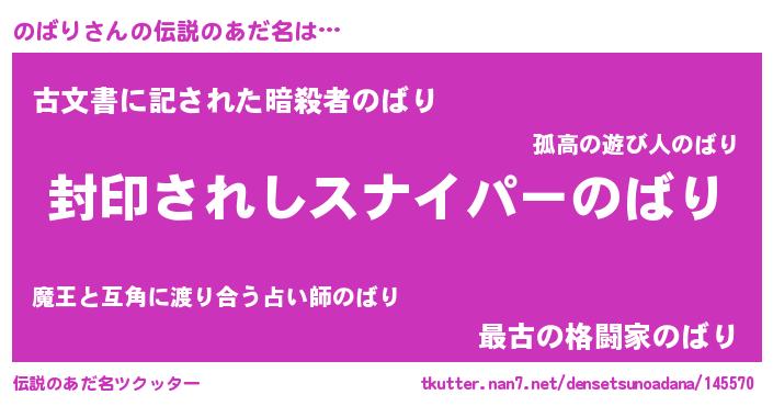 | 胡散臭い通販商品みたいなあだ名 | 『億万長者になれる霊験あらたかなお札…その名も「のばり」』 |