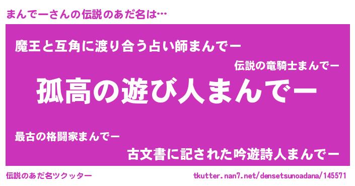 | 意味不明あだ名 | 『住所不定無職まんでー(85歳)』 |