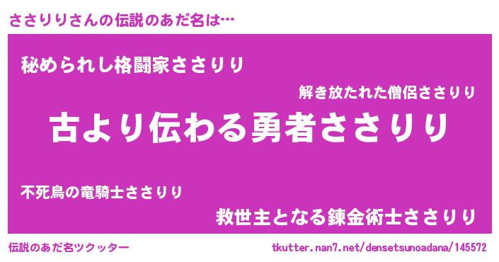 | 意味不明あだ名 | 『永久保存ささりり』『自称ささりり』 |