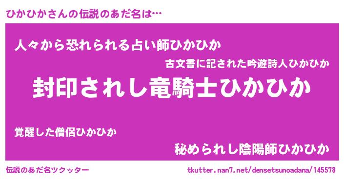 | 意味不明あだ名 | 『住所不定無職ひかひか(9歳)』 |