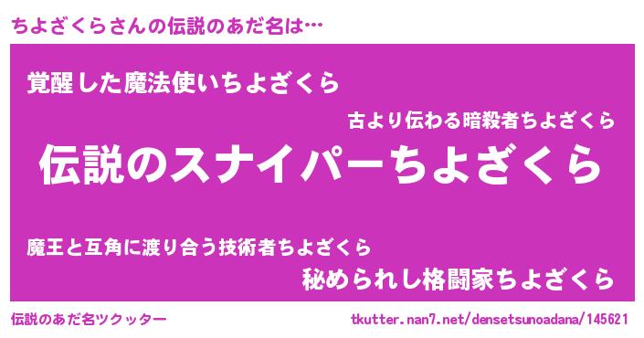 | 男性向けラノベタイトル風あだ名 | 『ちよざくらの憂鬱』 |