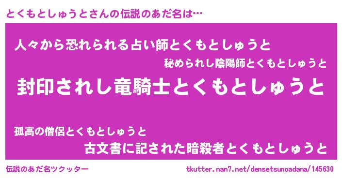 | ヒーロー風カッコイイあだ名 | 『スーパートクモトシュウト』 |