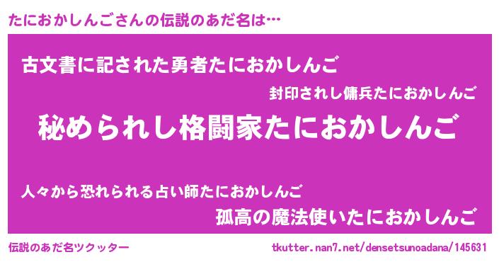 | 意味不明あだ名 | 『自称たにおかしんご』 |
