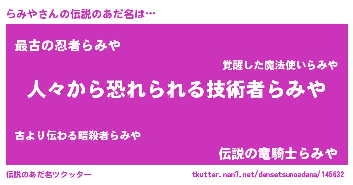 | ヒーロー風カッコイイあだ名 | 『正義の使者らみや』『仮面ラミダー』 |