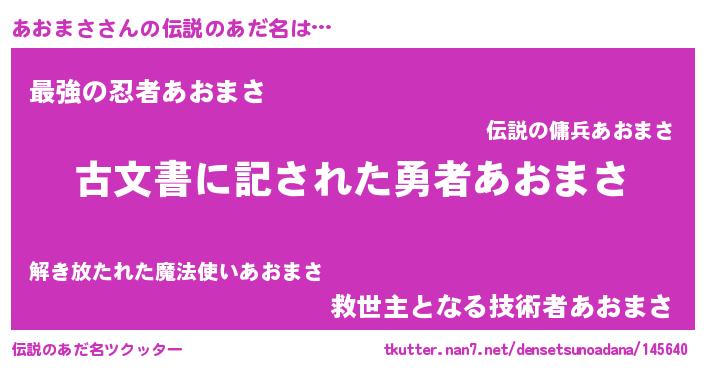 | ファンタジー風あだ名 | 『アオディッシュ』『ゼアオトゥ』 |
