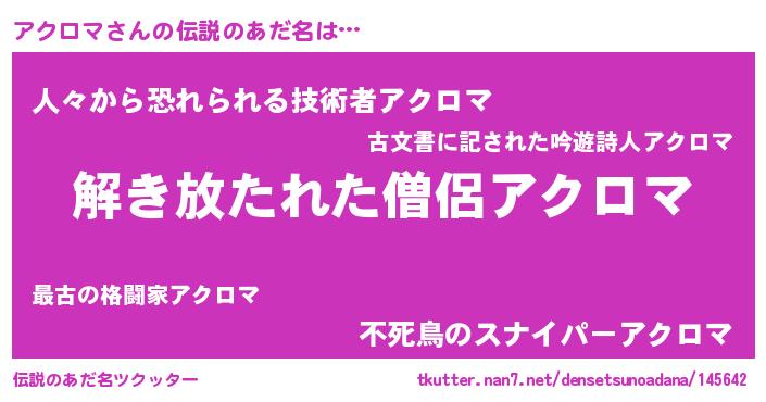 | ヒーロー風カッコイイあだ名 | 『幻影騎士アク』『愛の使者アクロマ』 |