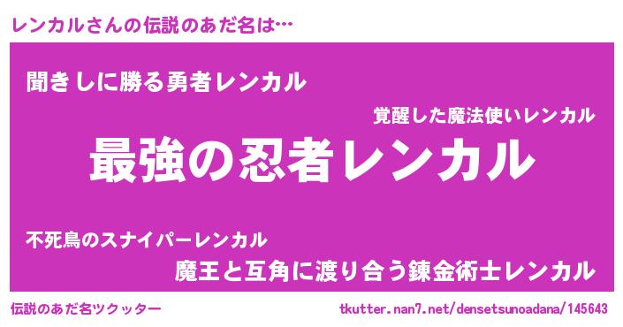 | ヒーロー風カッコイイあだ名 | 『ウルトラレンカルマン』『ネオレンカル』 |