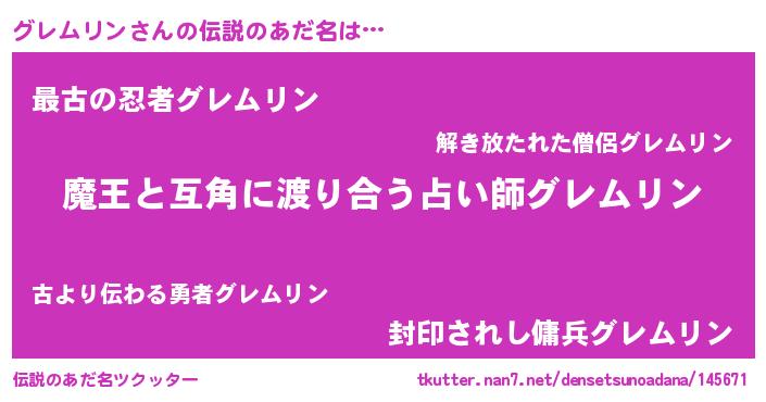 | 女子向けラノベタイトル風あだ名 | 『グレムリン恋絵巻』 |