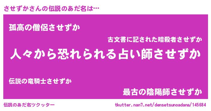 | ヒーロー風カッコイイあだ名 | 『正義の使者させずか』『黄金騎士サセ』 |