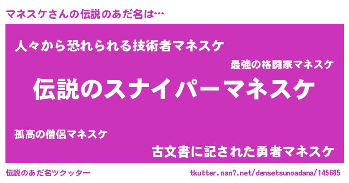 | 意味不明あだ名 | 『ペロリンマネスケ』『自称マネスケ』 |