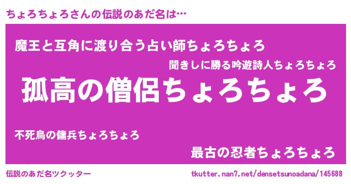 | ファンタジー風あだ名 | 『ゼチョトゥ』『ファントムチョス』 |