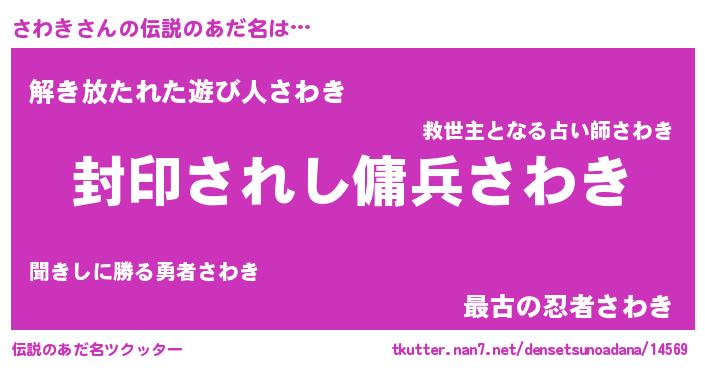 | 胡散臭い通販商品みたいなあだ名 | 『あなたにだけ特別に提供する限定10本のレアな日本酒…その名も「さわき」』 |