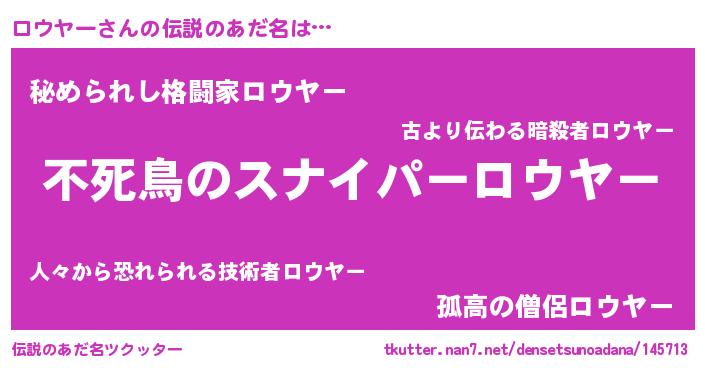 | ヒーロー風カッコイイあだ名 | 『スーパーロウヤー』『仮面ロウダー』 |