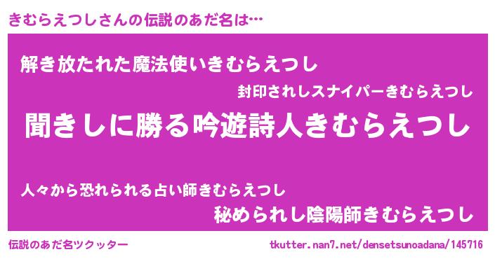 | 意味不明あだ名 | 『自称きむらえつし』 |