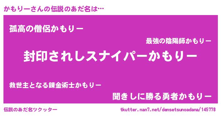 | 男性向けラノベタイトル風あだ名 | 『この素晴らしい世界にかもりーを!』 |
