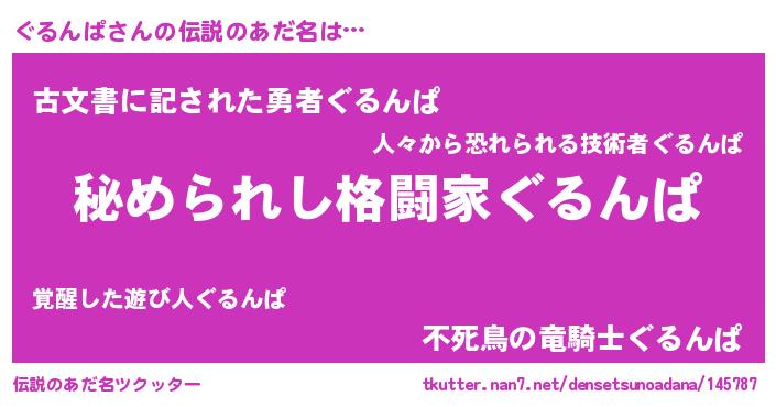| ヒーロー風カッコイイあだ名 | 『ウルトラぐるんぱマン』『ネオグルンパ』 |