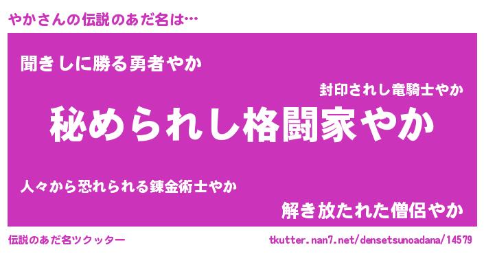 | 意味不明あだ名 | 『やかフォーエバー』『自称やか』 |