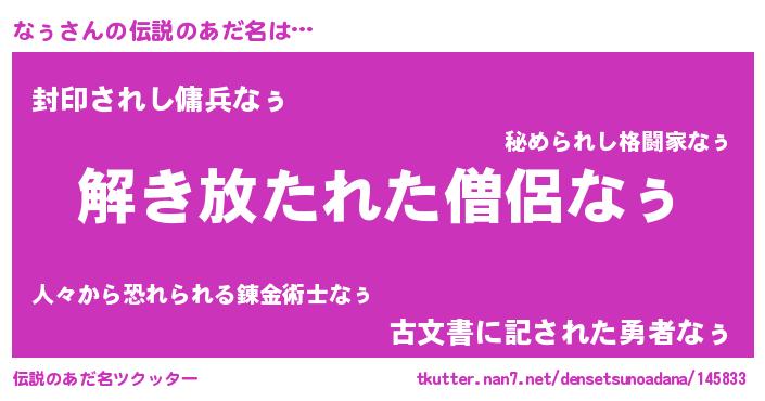 | 意味不明あだ名 | 『自称なぅ』『とにかく怪しいなぅ』 |