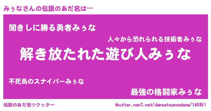 | 意味不明あだ名 | 『住所不定無職みぅな(98歳)』 |