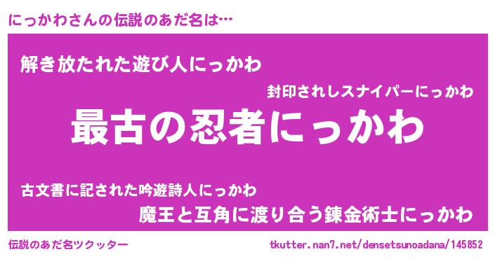 | 意味不明あだ名 | 『住所不定無職にっかわ(40歳)』 |