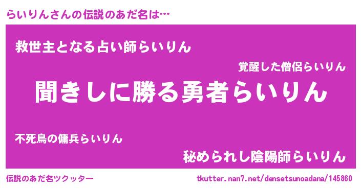 | ヒーロー風カッコイイあだ名 | 『ネオライリン』『慈愛の使者らいりん』 |