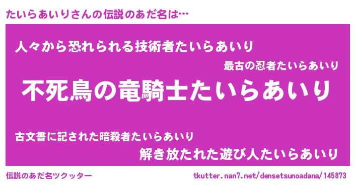 | ヒーロー風カッコイイあだ名 | 『仮面タイダー』『スーパータイラアイリ』 |