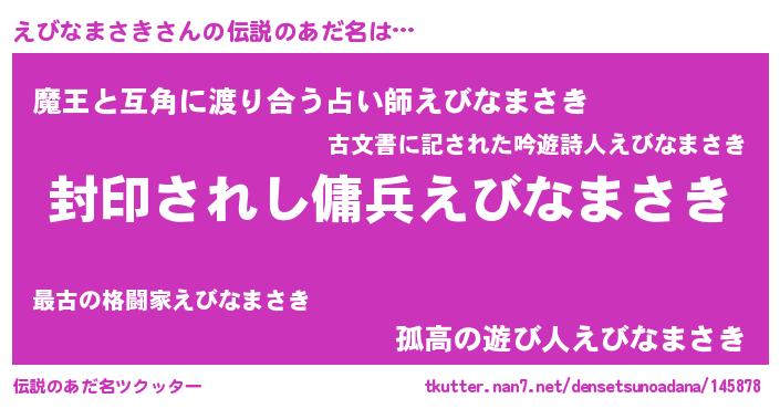 | 意味不明あだ名 | 『自称えびなまさき』 |