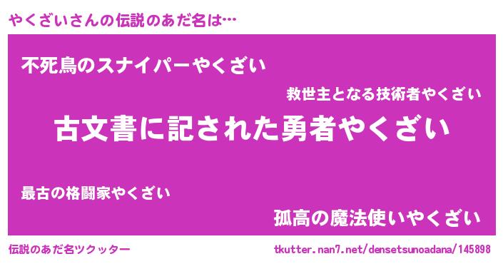 | 意味不明あだ名 | 『永久保存やくざい』『自称やくざい』 |