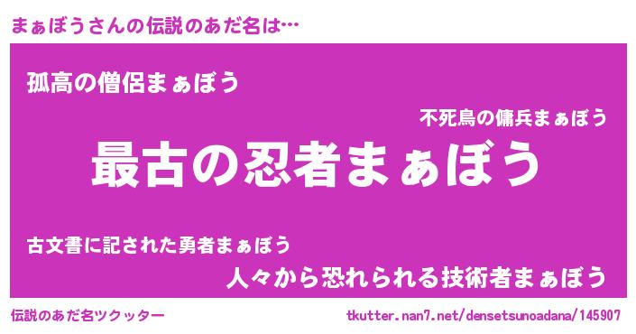 | ヒーロー風カッコイイあだ名 | 『ウルトラまぁぼうマン』『暗黒騎士マァ』 |