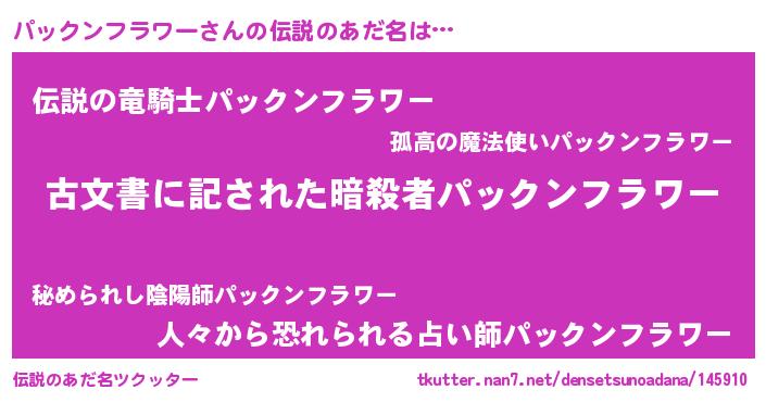 | 肩書あだ名 | 『パックンフラワー閣下』 |