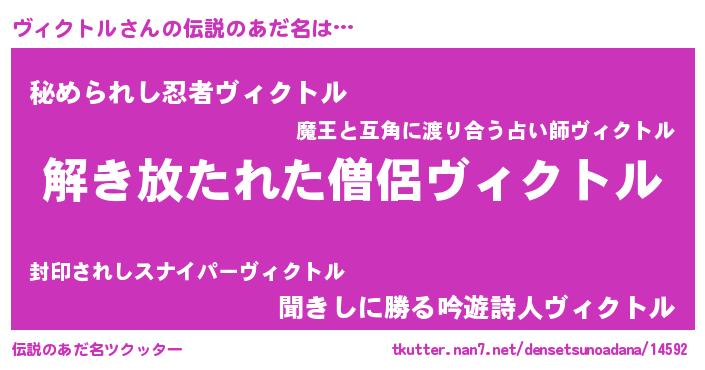 | 意味不明あだ名 | 『とにかく怪しいヴィクトル』 |