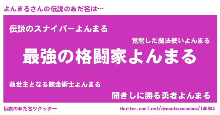 | ファンタジー風あだ名 | 『エターナルヨンマルー』『ヨンフェル』 |