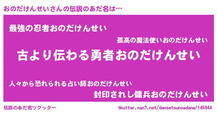 | 男性向けラノベタイトル風あだ名 | 『おのだけんせいという概念が存在しない退屈な世界 』 |