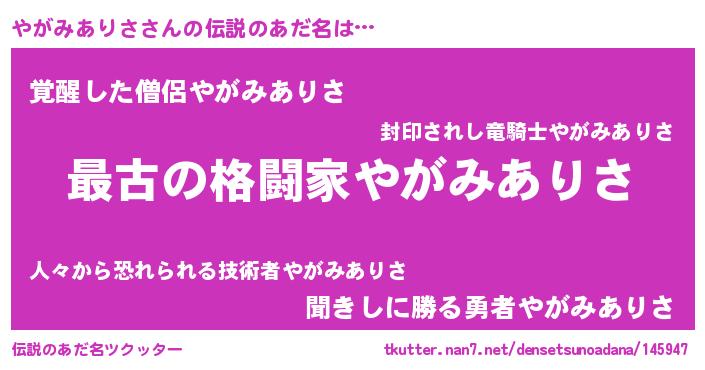 | ヒーロー風カッコイイあだ名 | 『サイバー戦士ヤガミアリサ』 |