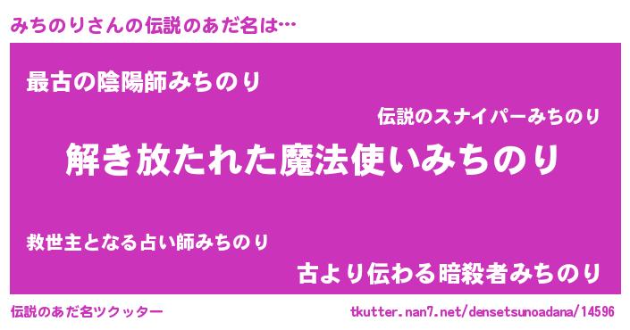 | ヒーロー風カッコイイあだ名 | 『魔戒騎士ミチ』『ウルトラみちのりマン』 |