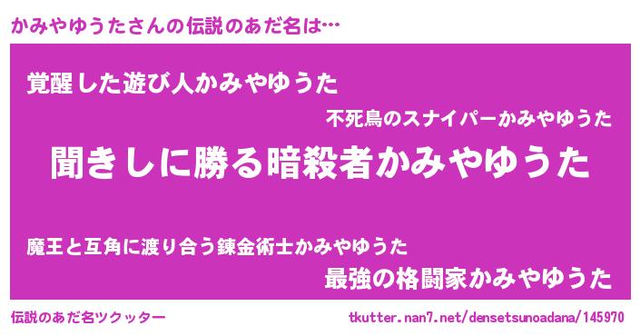| 意味不明あだ名 | 『永久保存かみやゆうた』 |